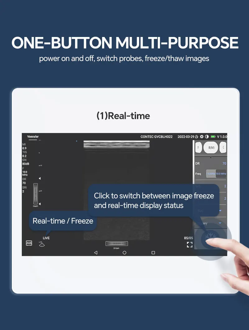 It adopts ultrasonic Doppler technology and ultrasonic echo theory to collect blood flow movement, tissue movement information and human organ tissue imaging. Small in volume, easy to operate, which is applicable for use in hospitals, clinics, Center for Disease Control and Prevention, Clinical Laboratory Center, Health Care Center, first-aid stations, nursing stations, and other medical and health institutions, ambulances, etc. It is used for clinical ultrasound examination of human body, including abdomen, obstetrics and gynecology, urology, superficial organs, peripheral vascular, nerve, heart, etc.