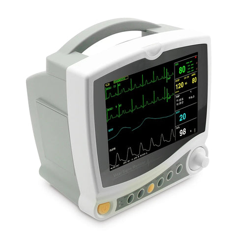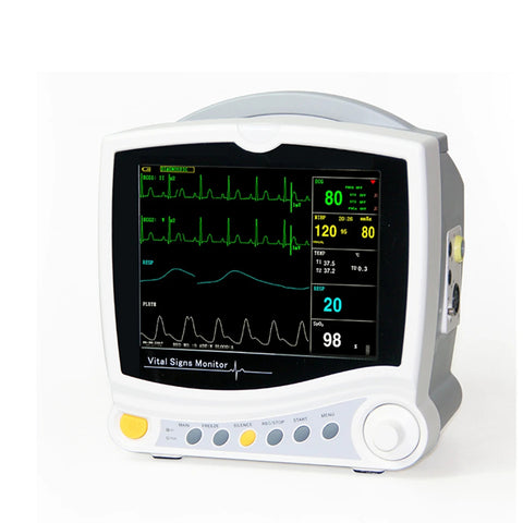 The monitor has abundant functions that can be used for clinical monitoring with adult, pediatric and neonate. Users may select different parameter configuration according to different requirements. The monitor, power supplied by 100-240V~,50/60Hz, adopts 8'' color TFT LCD displaying real-time date and waveform. It can synchronously display eight-channel waveform and full monitoring parameters equipped with an optional external 48mm thermal recorder. The monitor can be connected to the central monitoring system via wire or wireless network to form a network monitoring system.