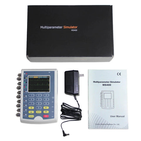 MS400 Multiparameter Simulator is a portable device, features in small volume and light weight. It can simulate accurately 12-lead ECG, Respiration, Temperature, 2-channel IBP or 4-channel IBP. And it can be tested in where the monitor is used.
