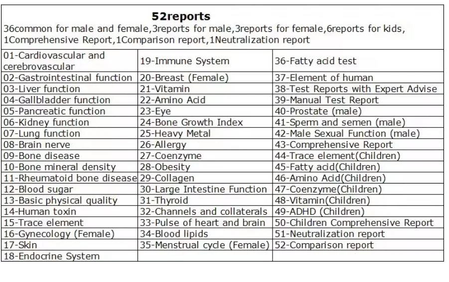 Quantum Resonance Magnetic Analyzer 52 Cases Of General Examination Report For Analysis And Improvement Of Physical Health