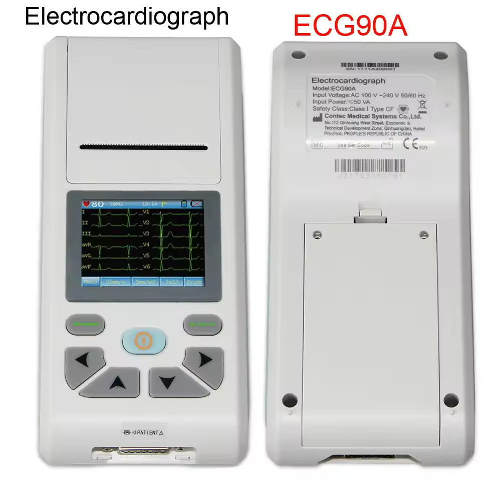 ECG90A is an Electrocardiograph which can collect 12-lead ECG signal simultaneously and print waveform by the thermal printing system. It features in, recording and displaying ECG waveform in AUTO/Manual mode, measuring and diagnosing ECG waveform parameters automatically, prompting for “Lead off” and “Lack of paper”, multi-language interface, case database management.