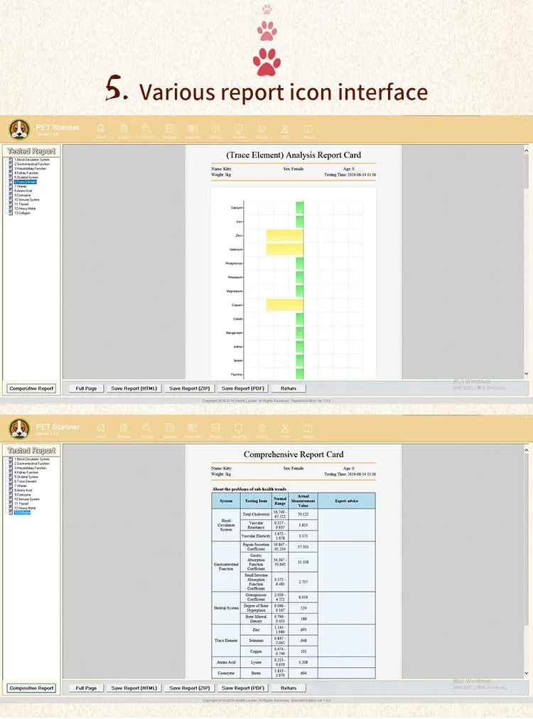 [Pet Scanner] involves high-tech innovation projects of medicine, bio-informatics,electrical engineering and other sciences. Using the quantum medicine as the theoretical basis, it applies the advanced electronic equipment to collect the weak magnetic field of animal cells for scientific analysis, thereby analyzing and eterning the tested animal's health status and main problems and putting forward standard prevention recommendations.