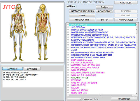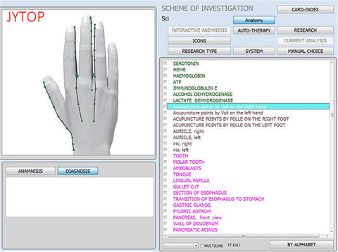 The results can be obtained in the form of visual images with the topography of the affected area, as well as graphical features, which allow us to see distress to body tissue. Our analysis is high accurate because the program allows the operator to research locally and in detail. Compared to other devices on the market, the 12D NLS appears to be the most user friendly device that provides exemplary accuracy. With its ease of simplicity, it is designed to be used by anyone who takes a proactive approach and strives for good health and well-being.