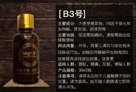 Instructions: For external use, evenly press the relevant meridian or acupuncture point in the palm. If you subsequently use the acid-base bio-electric DDS press the motor and then smear the part, press the motor, the effect is better.