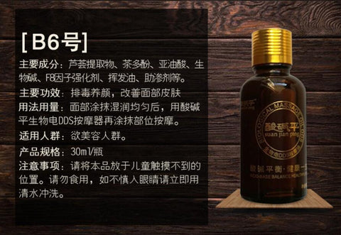 Dosage: After moisturizing and evenly spreading on the face, level the bio-electric DDS with acid and alkali, press the motor, and then rub the area.