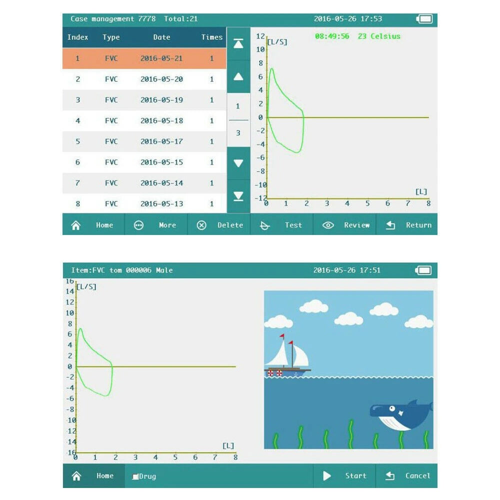 3)Real-time display respiration waveform:Flow-Volume loop and Volume-Time curve chart;