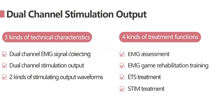 Independent dual-channel electrical stimulation output, convenient for the treatment of different sites or complete the treatment in coordination.