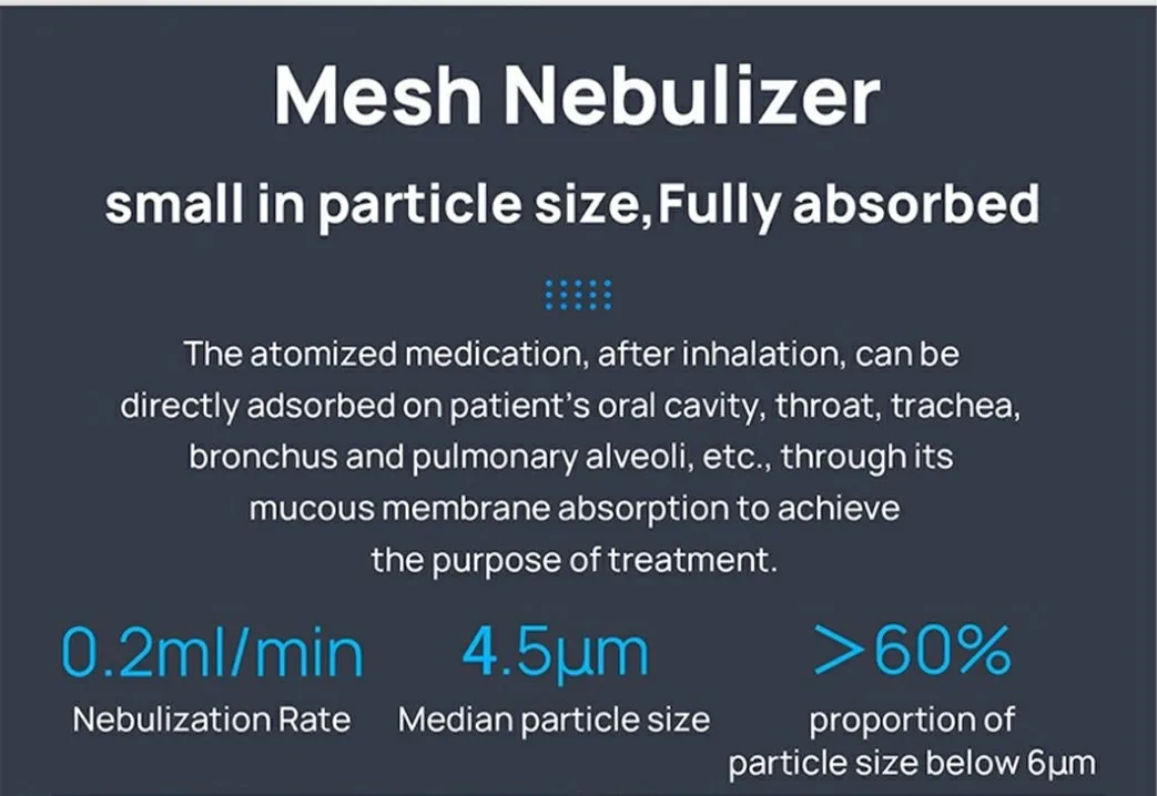 The Mesh Nebulizer forms nebulizing effect by the following actions, the high-frequency vibration of piezoelectric ceramic piece