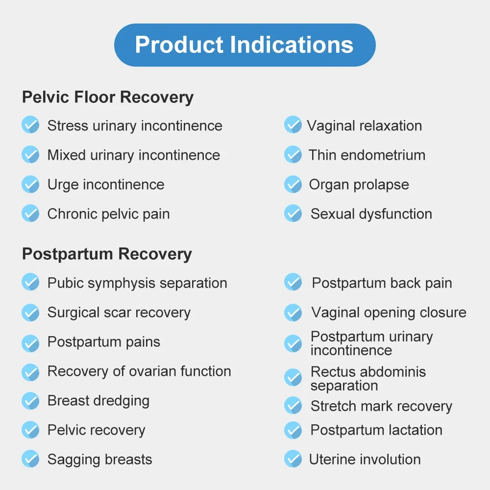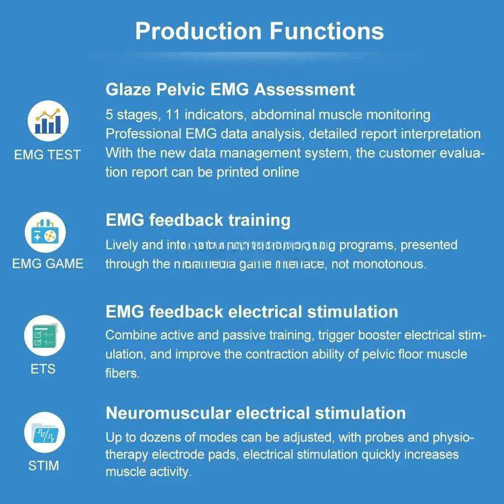 1. Combination of biofeedback and neuromuscular electrical stimulation to achieve pelvic floor assessment + postpartum training in one.