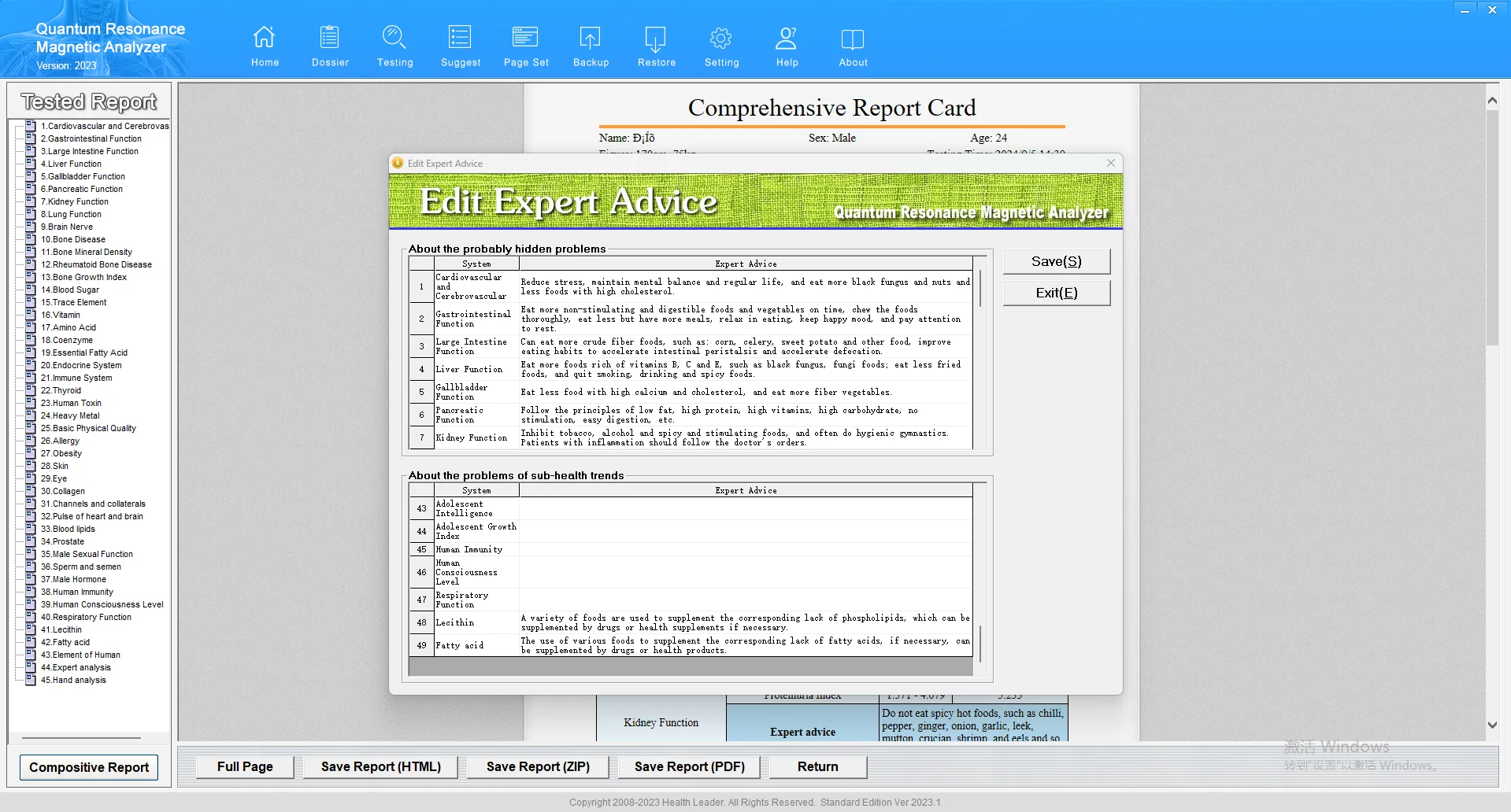 2.After your test is completed, specialist's recommendations will be available from the system or your health care advisor or your doctor. A composite report can be printed where the system will show the condition of your body now and show you how to improve it.