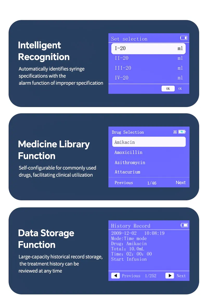 2. Identify the syringe specification automatically, with the alarm function of improper specification.