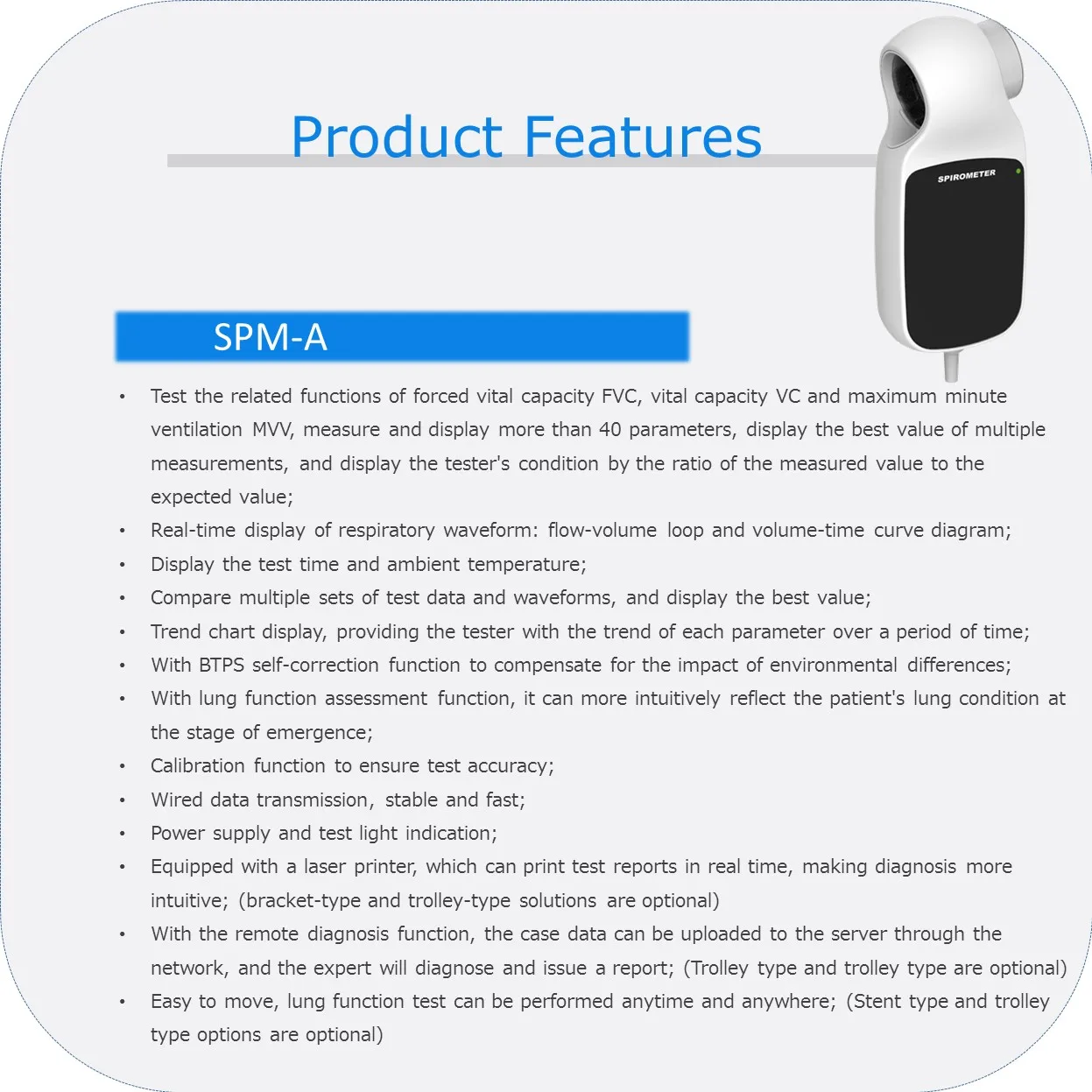 SPM-A SPIROMETER is a hand-held equipment for checking lung conditions, adopts the mode of infrared interruption for measuring