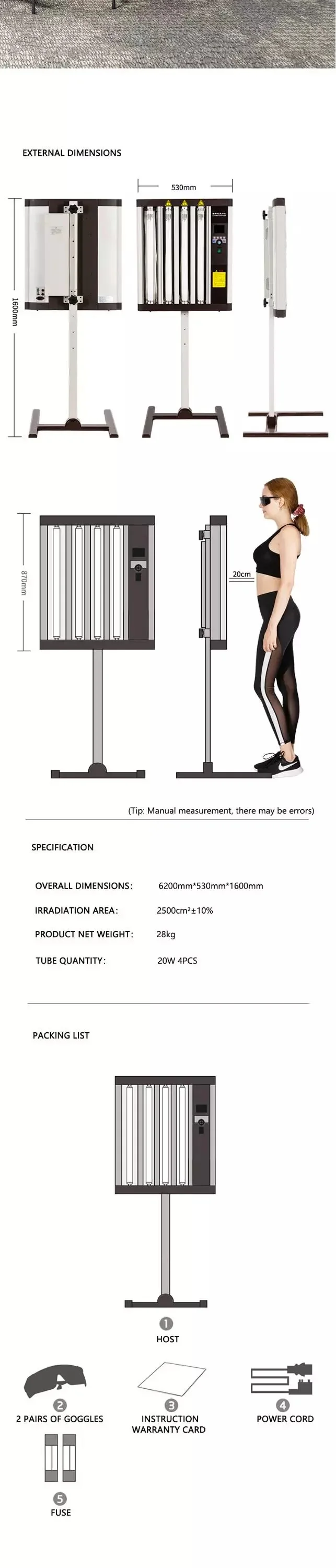 1.Half body UV phototherapy panel